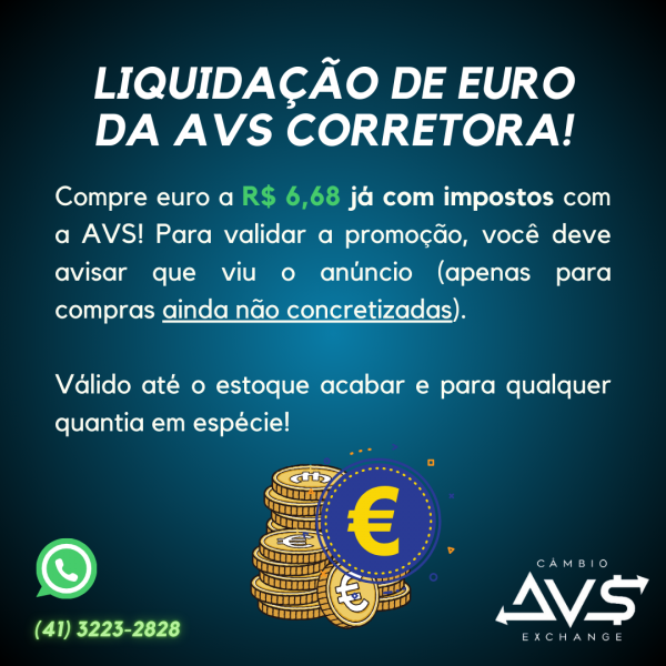 EUR Compra R$ 5,9872 Venda R$ 6,6523